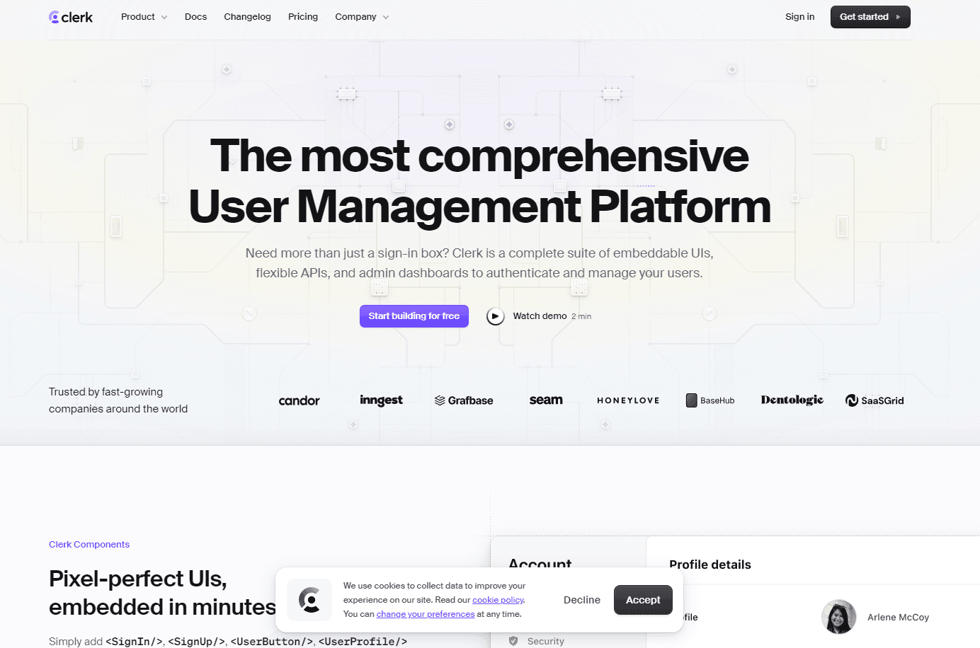 Clerk offers a range of prebuilt components for user management tasks, such as sign-up, sign-in, and profile management. These components are designed to be easy to use and highly customizable, allowing you to tailor them to match the look and feel of your application.